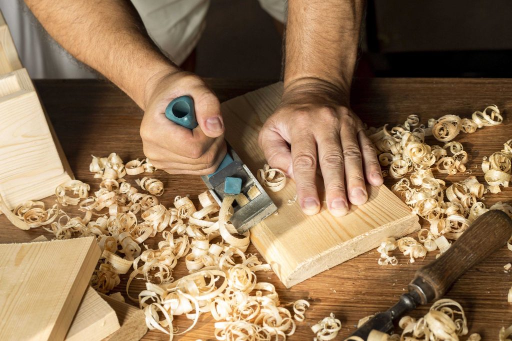 Carpenters make parts of buildings, such as staircases, door frames, and rafters. Their work may also include installing kitchen cabinets, countertops, molding, and trim. Carpenters use many hand tools such as saws, hammers, pliers, planes to smooth wood, and levels to tell if lines are straight.